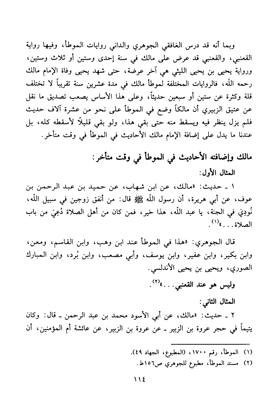 مالك وإضافته الأحاديث في الموطأ في وقت متأخر