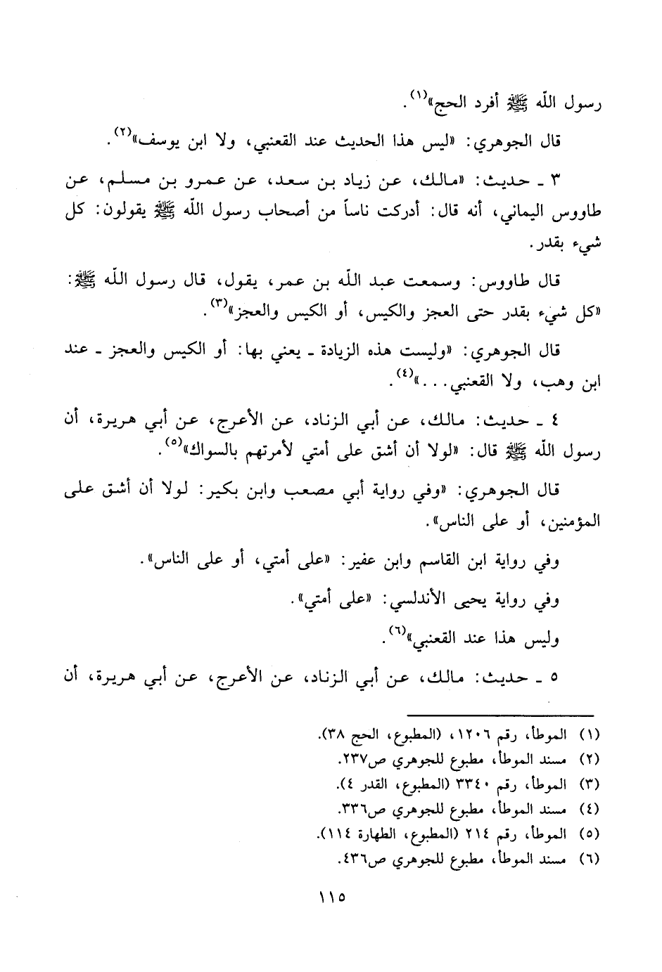 قال الجوهري: «ليس هذا الحديث عند القعنبي، ولا ابن يوسف».