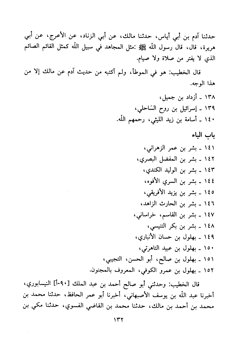 قال الخطيب هو في الموطأ، ولم أكتبه من حديث آدم عن مالك إلا من هذا الوجه.