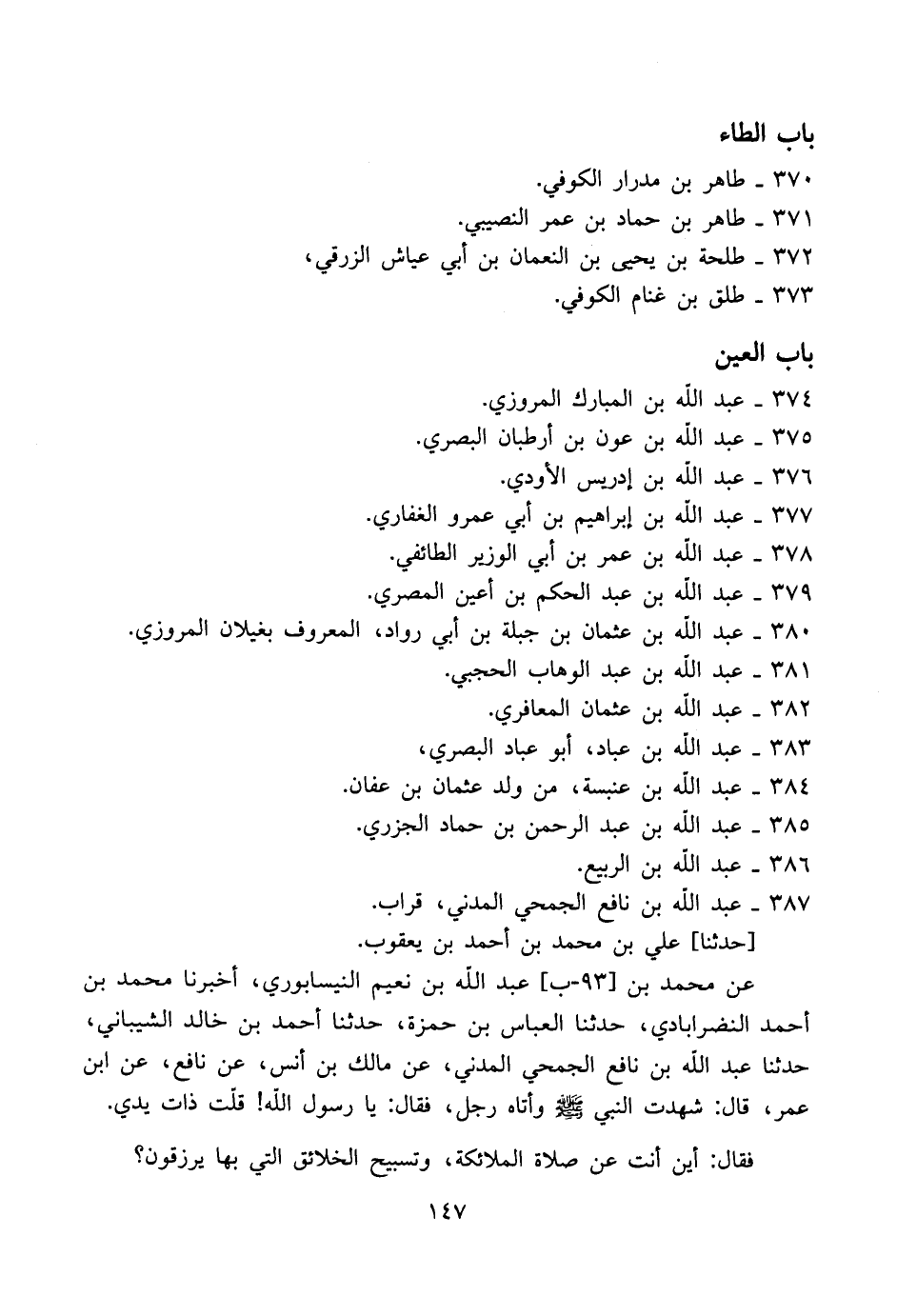 عن محمد بن [٩٣ - ب] عبد الله بن نعيم النيسابوري، أخبرنا محمد بن أحمد النضرابادي، حدثنا العباس بن حمزة، حدثنا أحمد بن خالد الشيباني، حدثنا عبد الله بن نافع الجمحي المدني، عن مالك بن أنس، عن نافع، عن ابن عمر، قال شهدت النبي صلى الله عليه وسلم وأتاه رجل، فقال يا رسول الله قلّت ذات يدي.