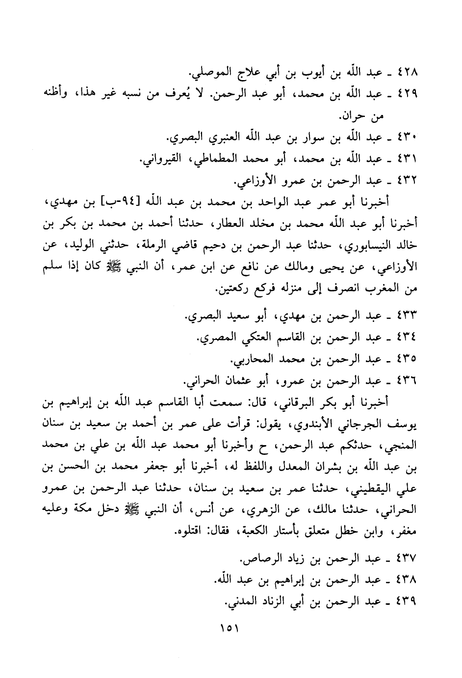 ٤٢٩ - عبد الله بن محمد، أبو عبد الرحمن لا يُعرف من نسبه غير هذا، وأظنه من حران