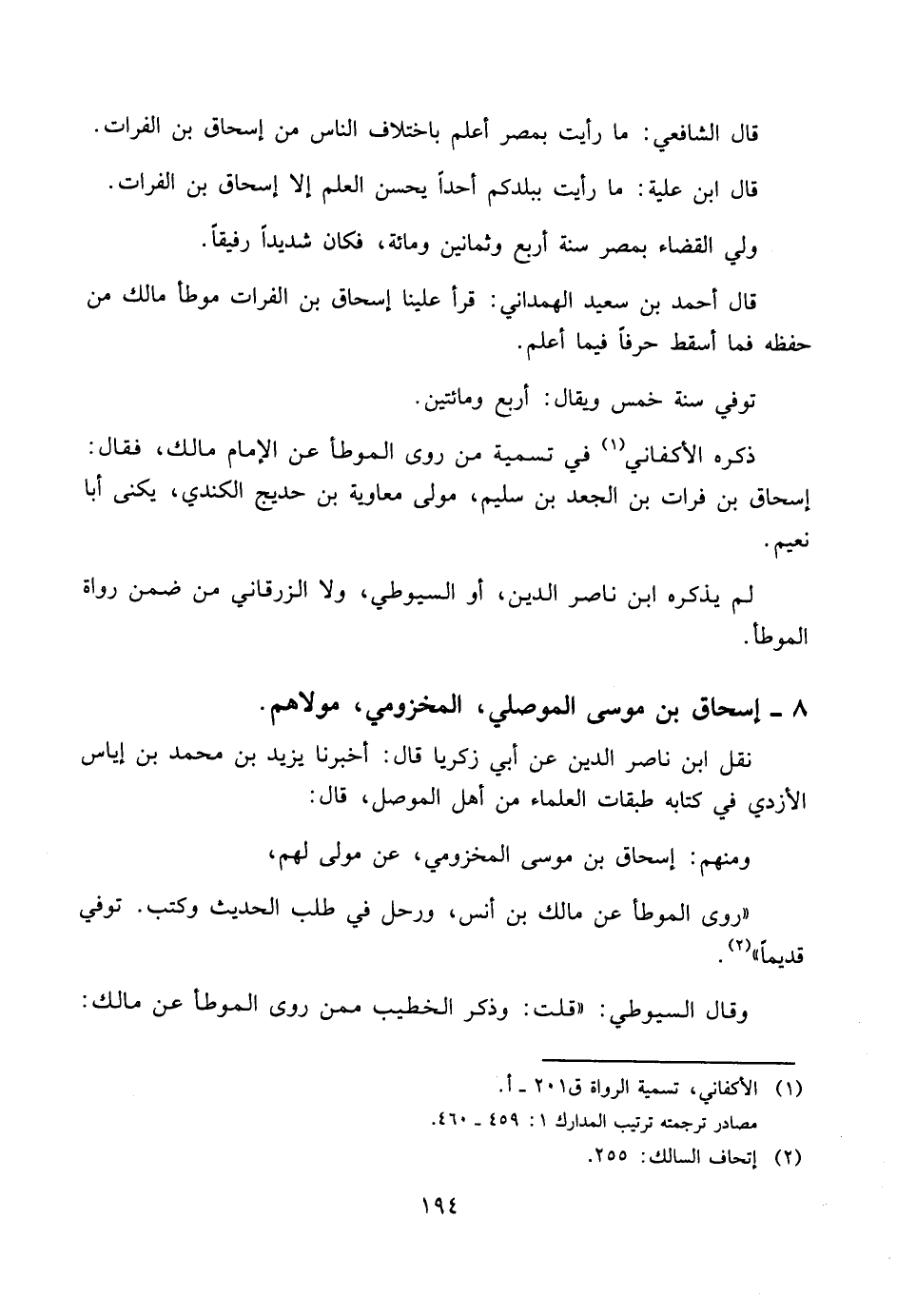قال أحمد بن سعيد الهمداني: قرأ علينا إسحاق بن الفرات موطأ مالك من حفظه فما أسقط حرفاً فيما أعلم.