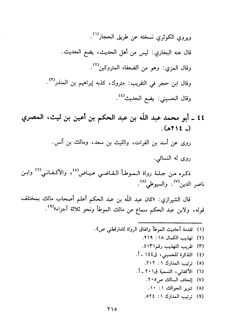 ٤٤ - أبو محمد عبد الله بن عبد الحكم بن أعين بن ليث، المصري (- ٢١٤هـ).