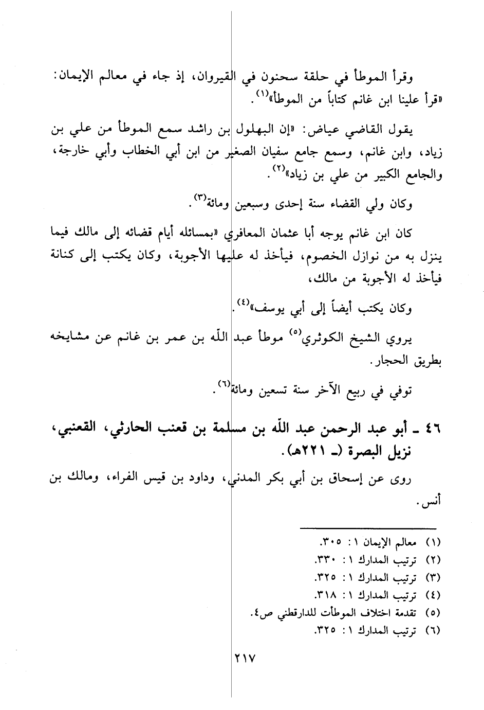 ٤٦ - أبو عبد الرحمن عبد الله بن مسلمة بن قعنب الحارثي، القعنبي، نزيل البصرة (- ٢٢١هـ).