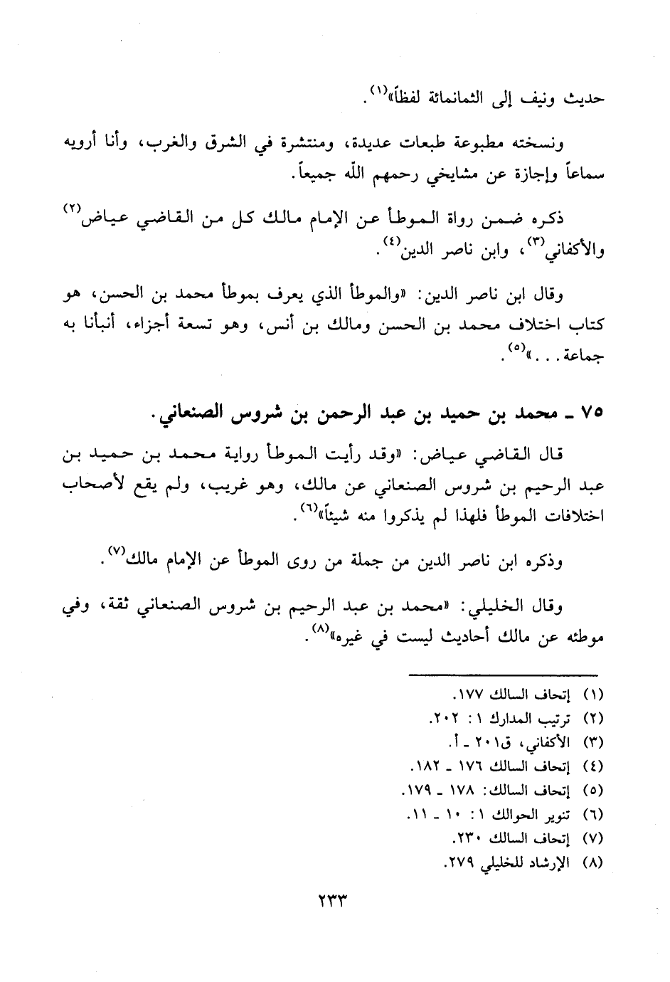 قال القاضي عياض: «وقد رأيت الموطأ رواية محمد بن حميد بن عبد الرحيم بن شروس الصنعاني عن مالك، وهو غريب، ولم يقع لأصحاب اختلافات الموطأ فلهذا لم يذكروا منه شيئاً».