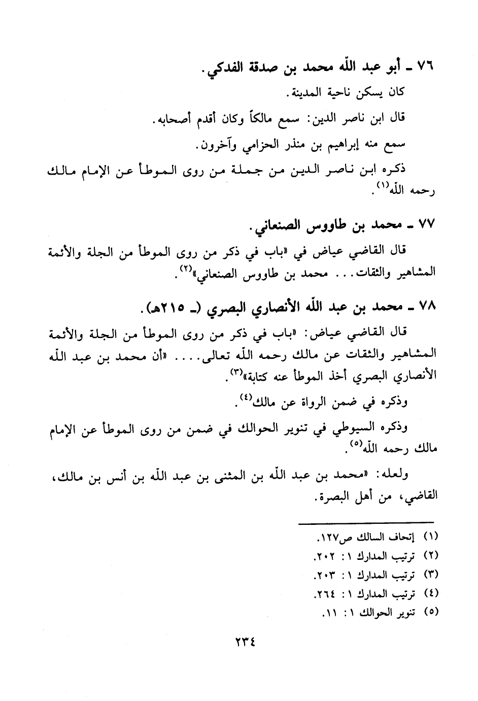 قال القاضي عياض في «باب في ذكر من روى الموطأ من الجلة والأئمة المشاهير والثقات ... محمد بن طاووس الصنعاني».