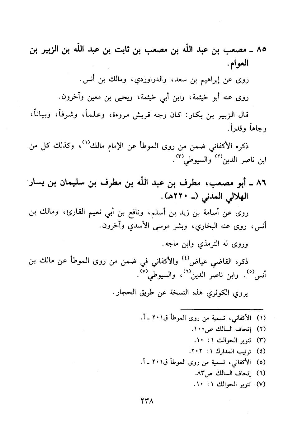 ٨٦ - أبو مصعب، مطرف بن عبد الله بن مطرف بن سليمان بن يسار الهلالي المدني (- ٢٢٠هـ).