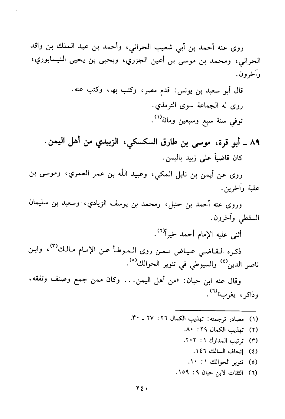 ٨٩ - أبو قرة، موسى بن طارق السكسكي، الزبيدي من أهل اليمن.