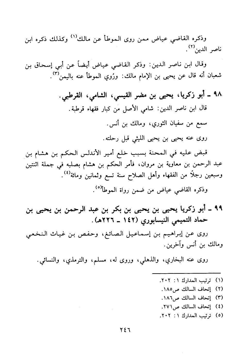 ٩٩ - أبو زكريا يحيى بن يحيى بن بكر بن عبد الرحمن بن يحيى بن حماد التميمي النيسابوري (١٤٢ - ٢٢٦هـ).
