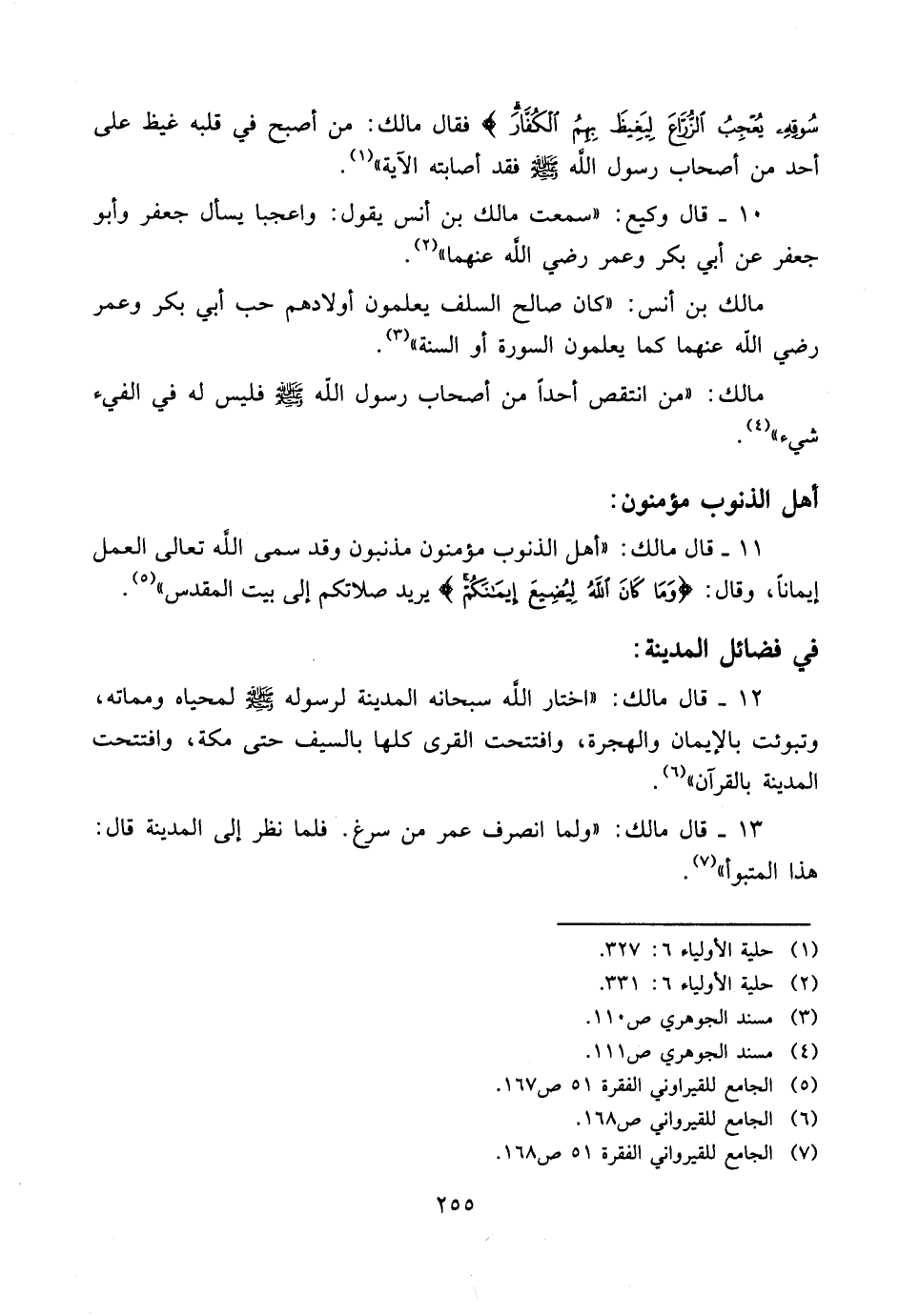 مالك: «من انتقص أحداً من أصحاب رسول الله صلى الله عليه وسلم فليس له في الفيء شيء».