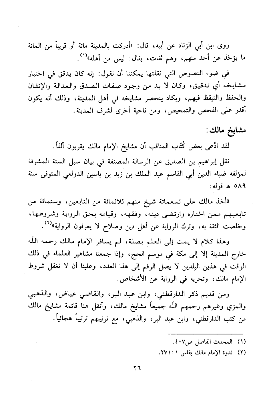 وهذا كلام لا يمت إلى العلم بصلة، لم يسافر الإمام مالك رحمه الله خارج المدينة إلا إلى مكة في موسم الحج، وإذا جمعنا مشاهير العلماء في ذلك الوقت في هذين البلدين لا يصل الرقم إلى هذا العدد، وعلينا أن لا نغفل شروط الإمام مالك، وتحريه في الرواية عن الأشخاص.