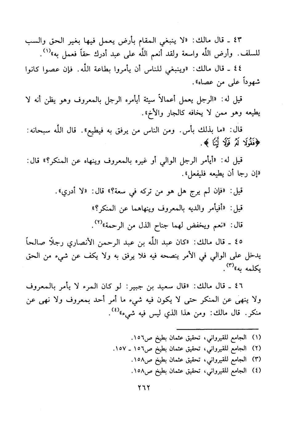 ٤٤ - قال مالك: «وينبغي للناس أن يأمروا بطاعة اللَّه. فإن عصوا كانوا شهوداً على من عصاه».