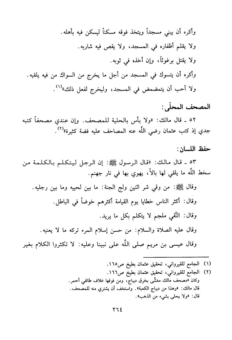 ٥٢ - قال مالك: «ولا بأس بالحلية للمصحف. وإن عندي مصحفاً كتبه جدي إذ كتب عثمان رضي اللَّه عنه المصاحف عليه فضة كثيرة».