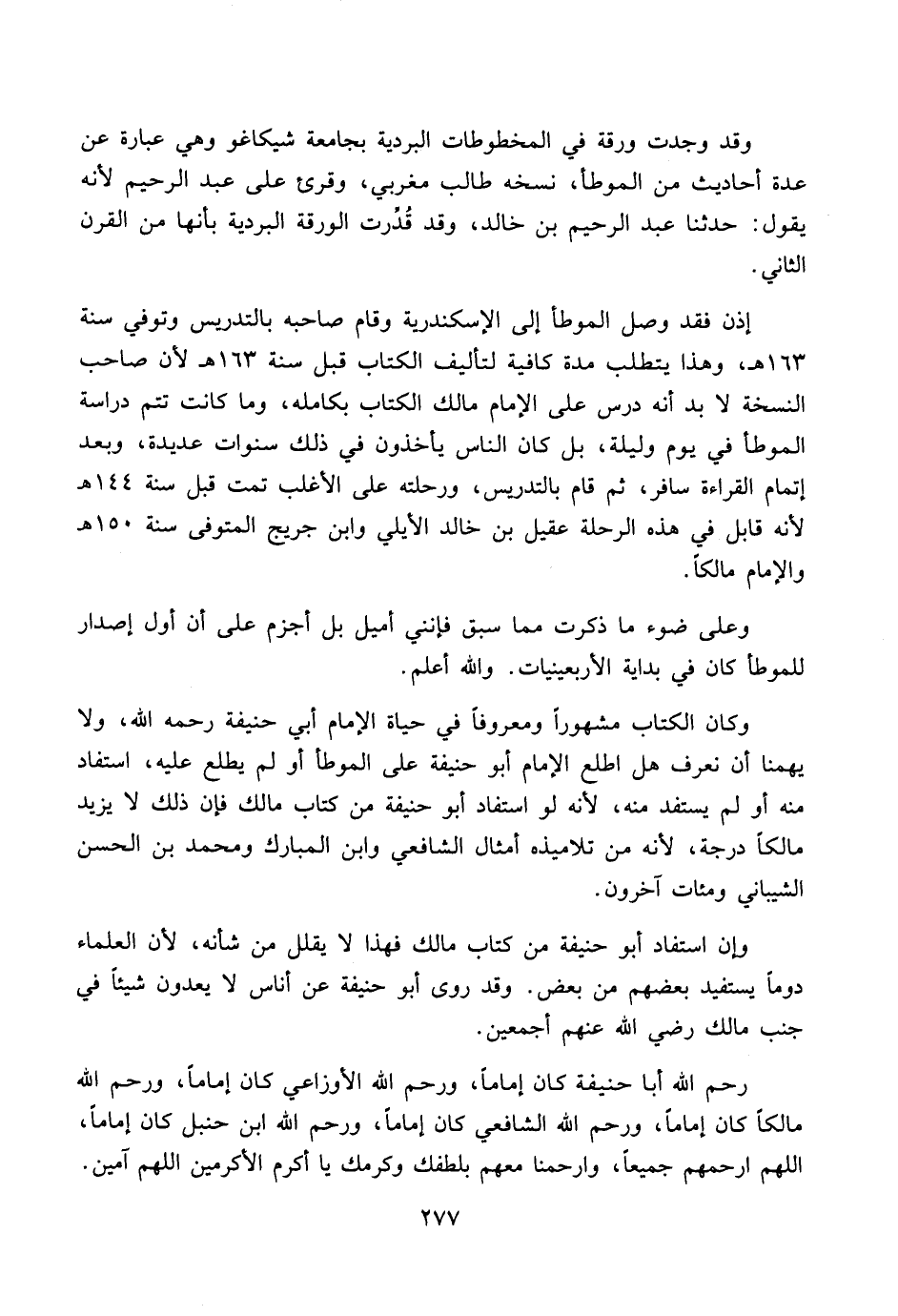وعلى ضوء ما ذكرت مما سبق فإنني أميل بل أجزم على أن أول إصدار للموطأ كان في بداية الأربعينيات. والله أعلم.