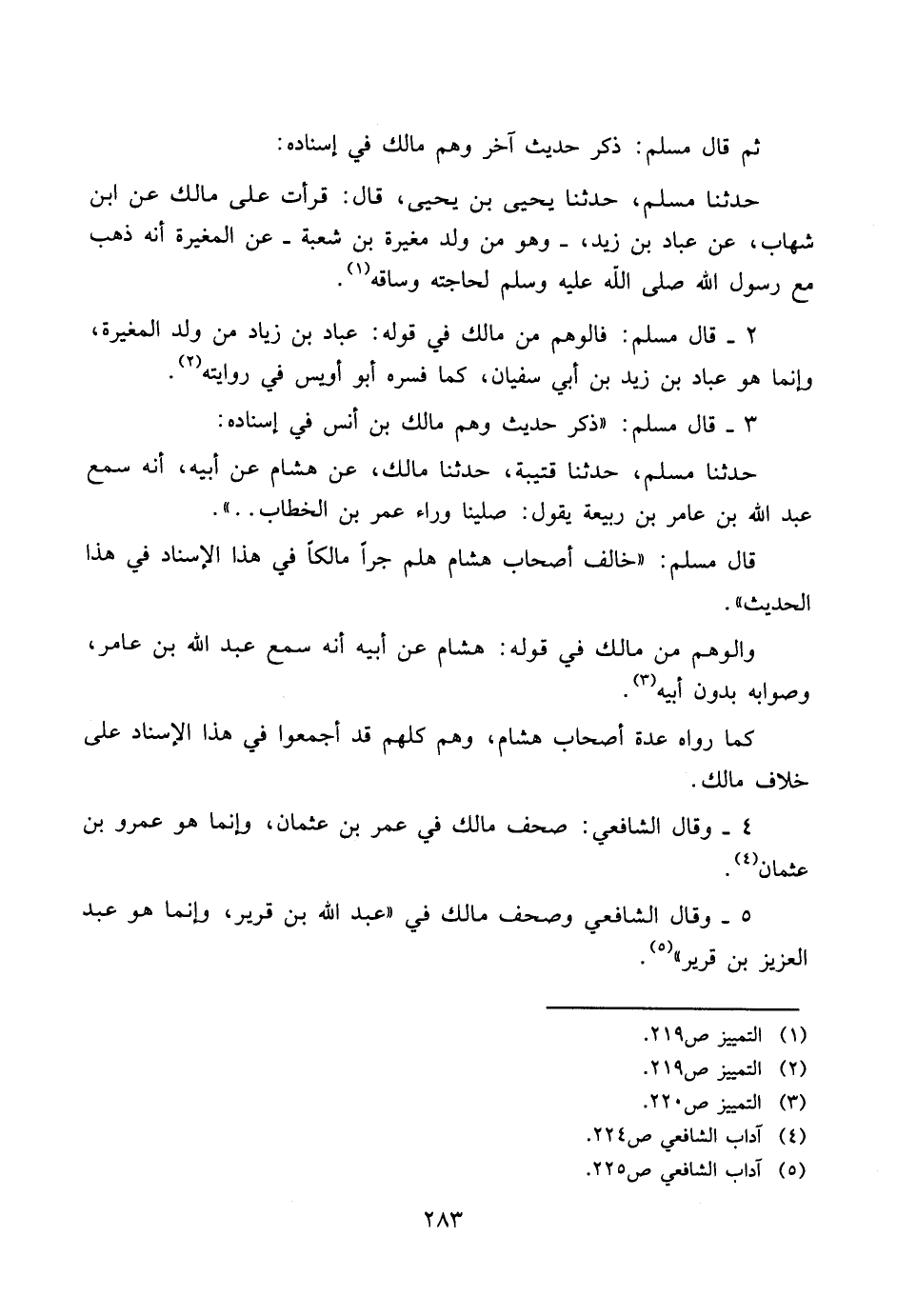 ٢ - قال مسلم: فالوهم من مالك في قوله: عباد بن زياد من ولد المغيرة، وإنما هو عباد بن زيد بن أبي سفيان، كما فسره أبو أويس في روايته.