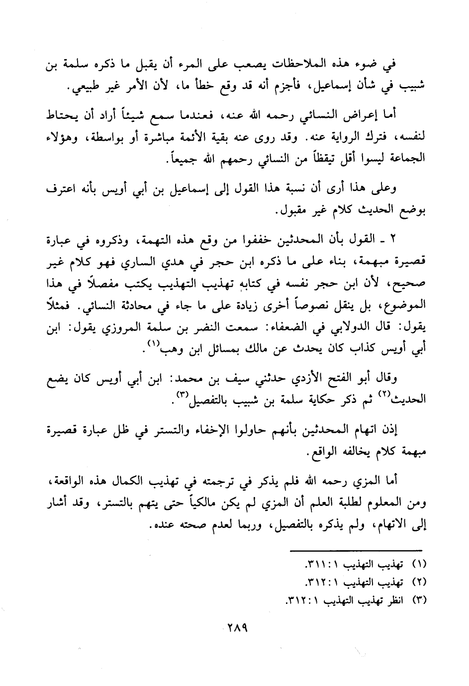 ٢ - القول بأن المحدثين خففوا من وقع هذه التهمة، وذكروه في عبارة قصيرة مبهمة، بناء على ما ذكره ابن حجر في هدي الساري فهو كلام غير صحيح، لأن ابن حجر نفسه في كتابه تهذيب التهذيب يكتب مفصلاً في هذا الموضوع،
