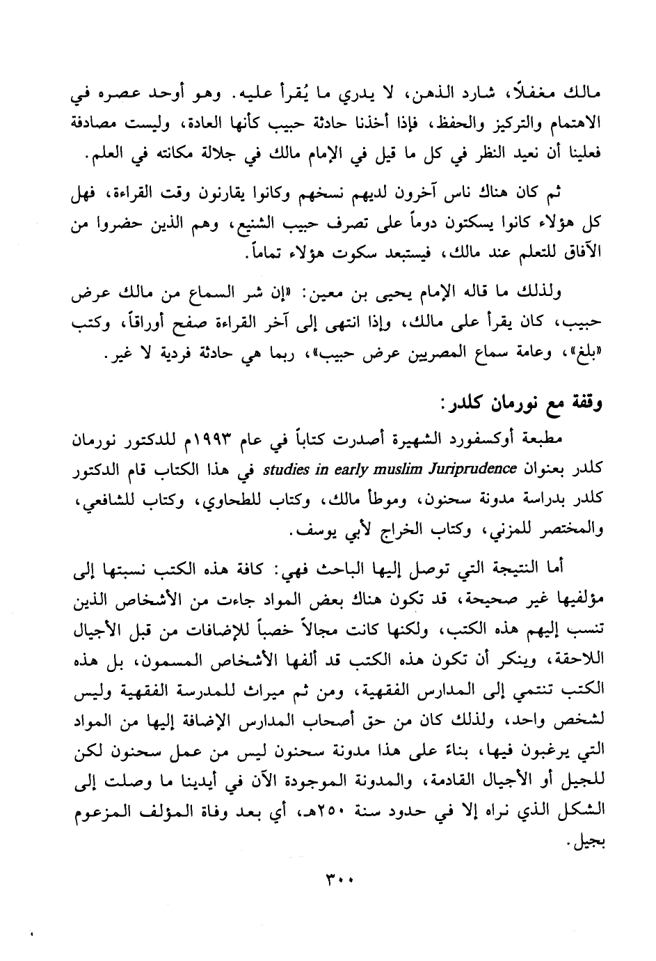 مطبعة أوكسفورد الشهيرة أصدرت كتاباً في عام ١٩٩٣م للدكتور نورمان كلدر بعنوان studies in early muslim Juriprudence في هذا الكتاب قام الدكتور كلدر بدراسة مدونة سحنون، وموطأ مالك، وكتاب للطحاوي، وكتاب للشافعي، والمختصر للمزني، وكتاب الخراج لأبي يوسف.