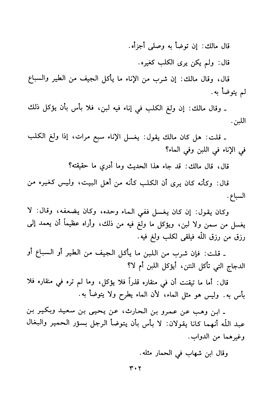 ابن وهب عن عمرو بن الحارث، عن يحيى بن سعيد وبكير بن عبد الله أنهما كانا يقولان: لا بأس بأن يتوضأ الرجل بسؤر الحمير والبغال وغيرهما من الدواب.