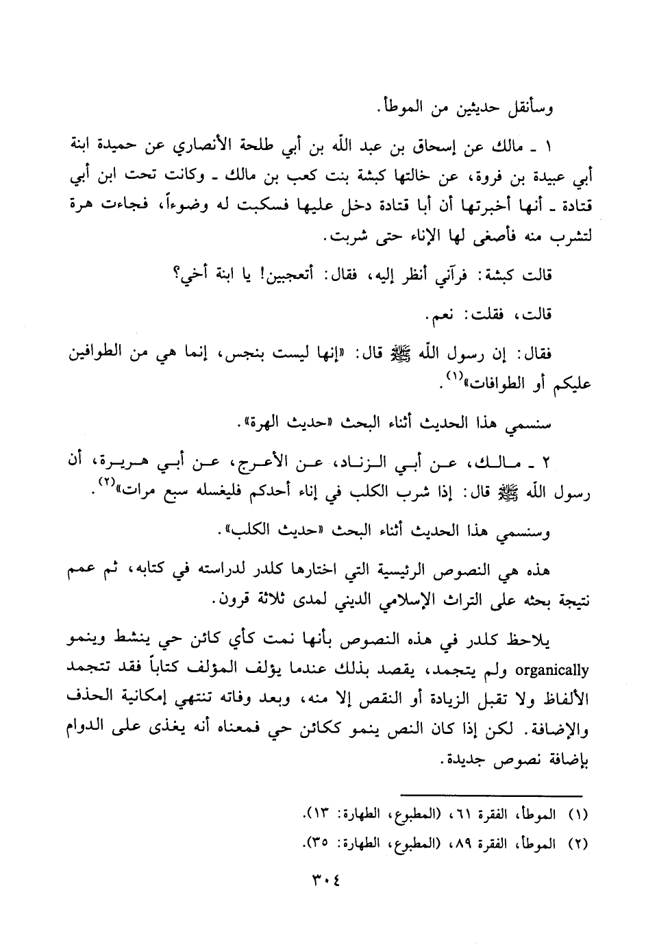 وسأنقل حديثين من الموطأ.