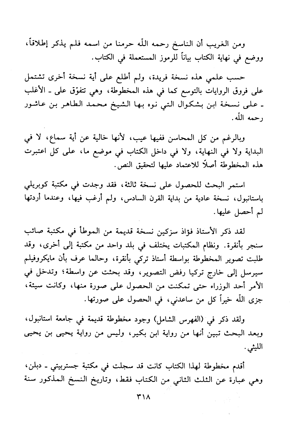 استمر البحث للحصول على نسخة ثالثة، فقد وجدت في مكتبة كوبريلي باستانبول، نسخة عادية من بداية القرن السادس، ولم أرغب فيها، وعندما أردتها لم أحصل عليها.