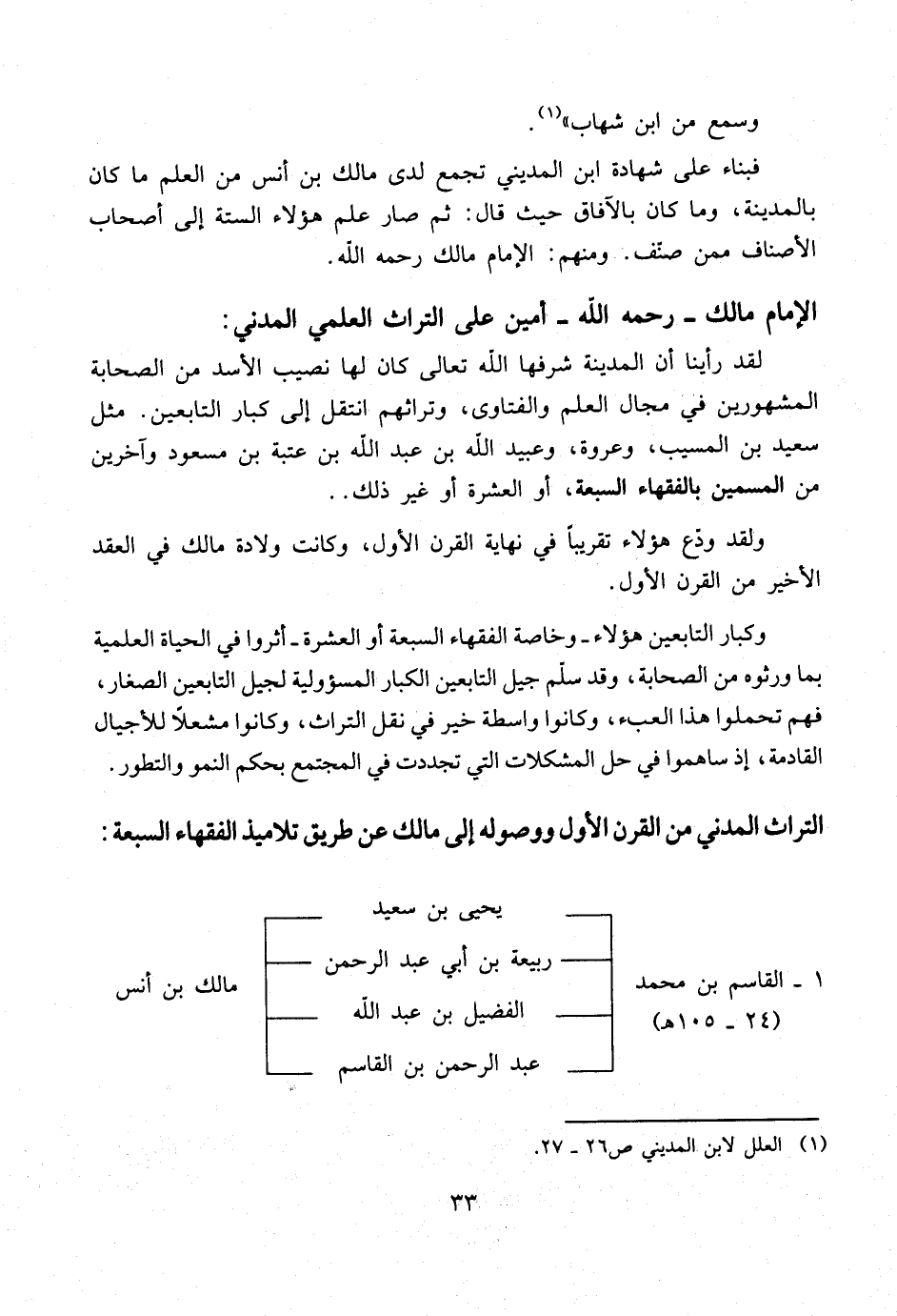 التراث المدني من القرن الأول ووصوله إلى مالك عن طريق تلاميذ الفقهاء السبعة