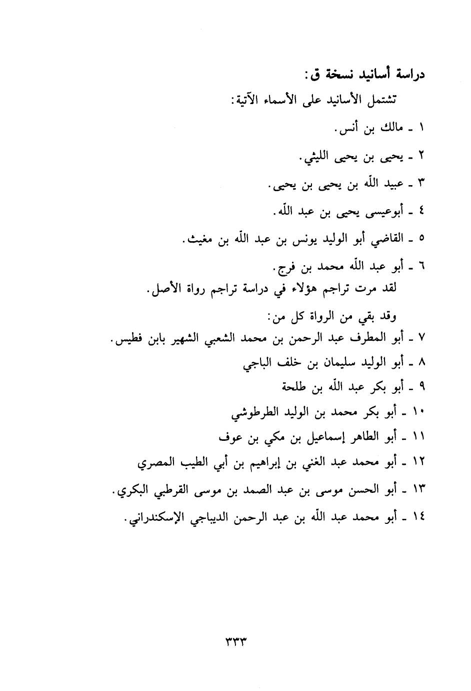 يشتمل الأسانيد على الأسماء الآتية: