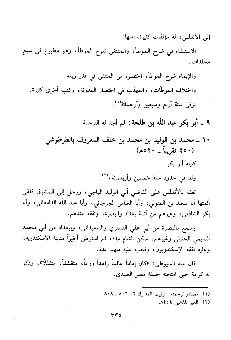 ١٠ - محمد بن الوليد بن محمد بن خلف المعروف بالطرطوشي (٤٥٠ تقريباً - ٥٢٠هـ)