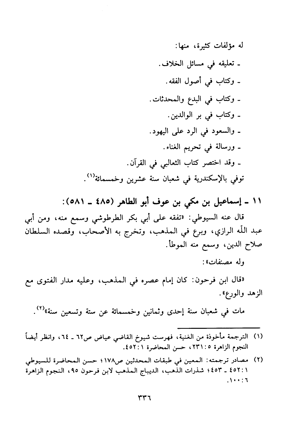 ١١ - إسماعيل بن مكي بن عوف أبو الطاهر (٤٨٥ - ٥٨١):