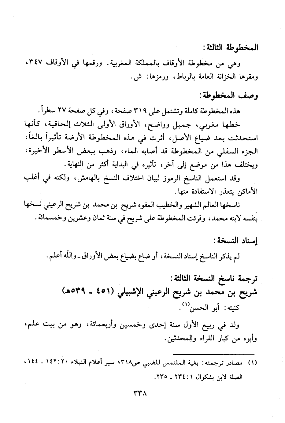 هذه المخطوطة كاملة وتشتمل على ٣١٩ صفحة، وفي كل صفحة ٢٧ سطراً.