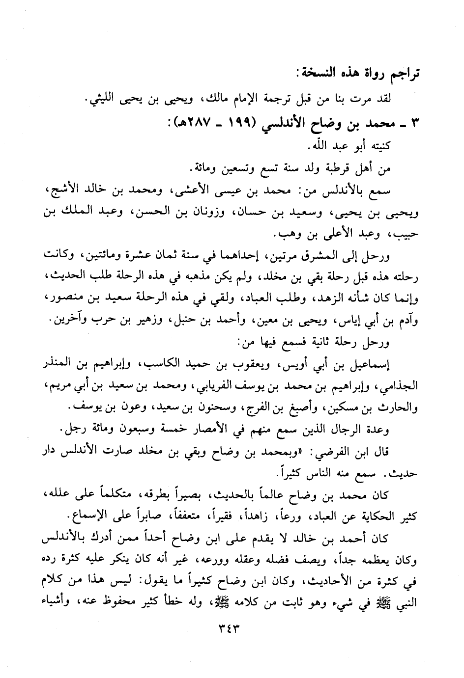 ٣ - محمد بن وضاح الأندلسي (١٩٩ - ٢٨٧هـ):