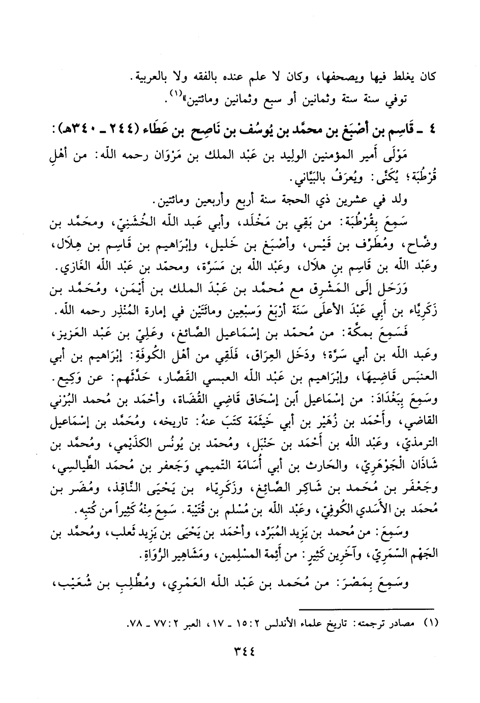 ٤ - قَاسِم بن أصْبَغ بن محمَّد بن يُوسُف بن نَاصِح بن عَطَاء (٢٤٤ - ٣٤٠هـ):