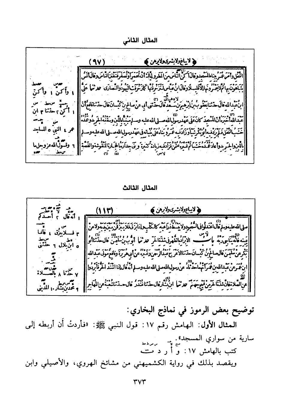 المثال الأول: الهامش رقم ١٧: قول النبي صلى الله عليه وسلم: «فأردتُ أَن أربطه إلى سارية من سواري المسجد».