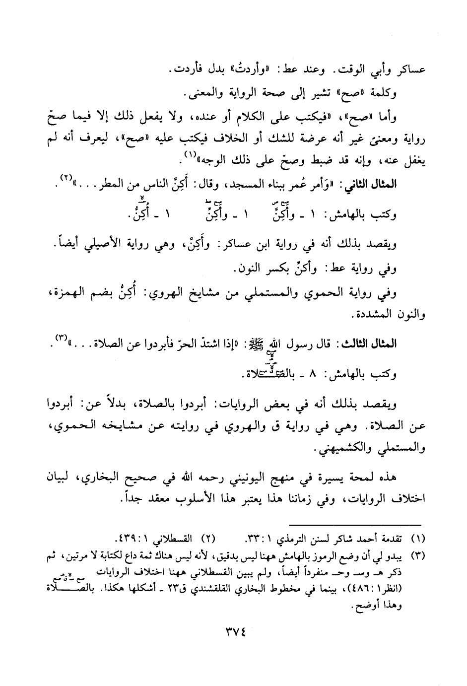 هذه لمحة يسيرة في منهج اليونيني رحمه الله في صحيح البخاري، لبيان اختلاف الروايات، وفي زماننا هذا يعتبر هذا الأسلوب معقد جداً.