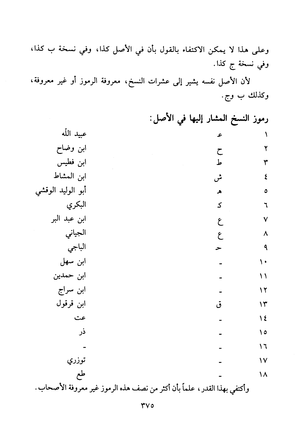 رموز النسخ المشار إليها في الأصل