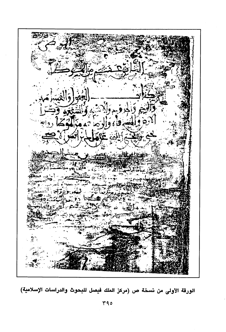 الورقة الأولى من نسخة ص (مركز الملك فيصل للبحوث والدراسات الإسلامية)