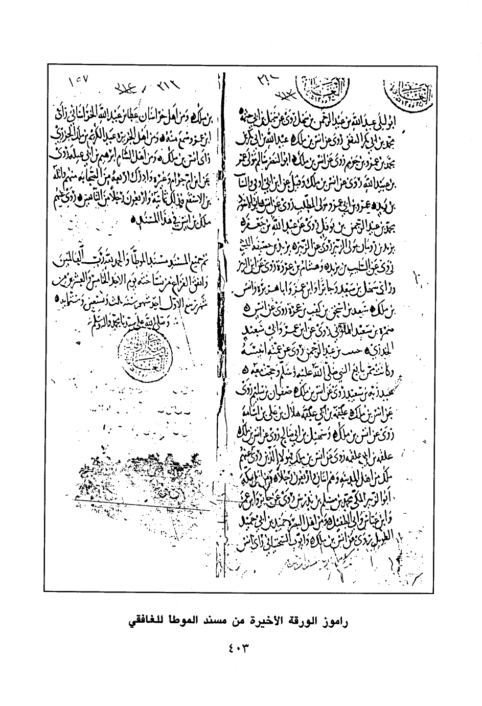 راموز الورقة الأخيرة من مسند الموطأ للغافقي