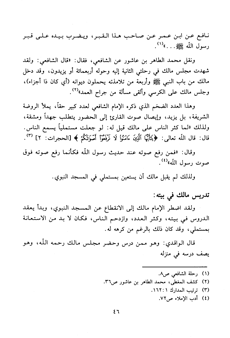 ولذلك لم يقبل مالك أن يستعين بمستملي في المسجد النبوي.