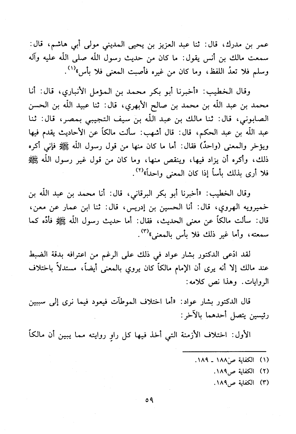 قال الدكتور بشار عواد: «أما اختلاف الموطآت فيعود فيما نرى إلى سببين رئيسين يتصل أحدهما بالآخر:
