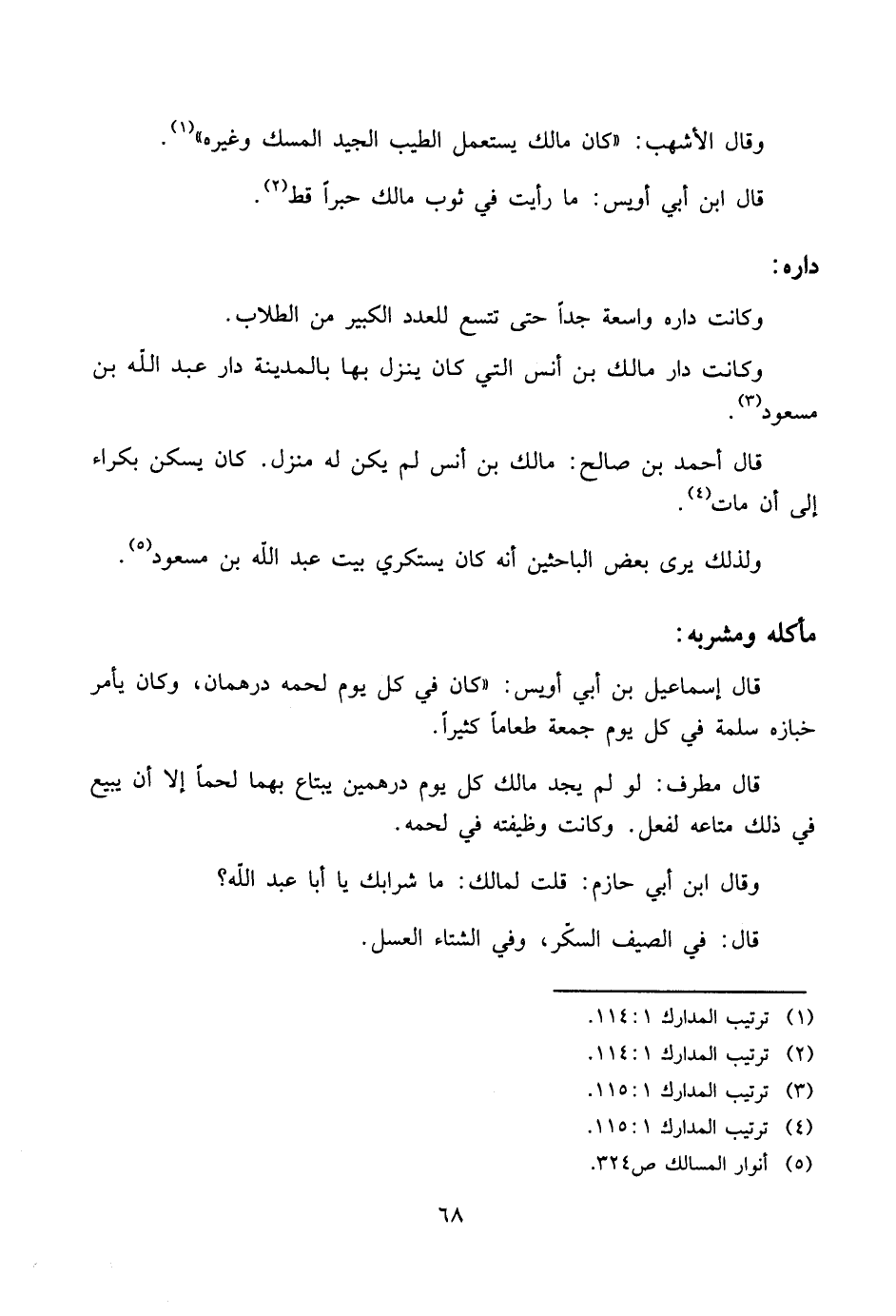 وكانت دار مالك بن أنس التي كان ينزل بها بالمدينة دار عبد الله بن مسعود.