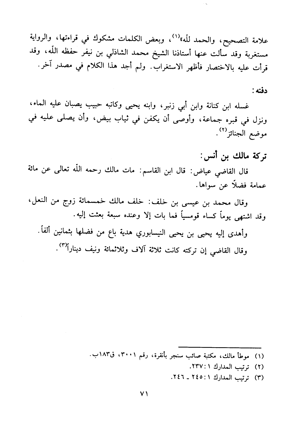علامة التصحيح، والحمد لله»، وبعض الكلمات مشكوك في قراءتها، والرواية مستغربة وقد سألت عنها أستاذنا الشيخ محمد الشاذلي بن نيفر حفظه الله، وقد قرأت عليه بالاختصار فأظهر الاستغراب. ولم أجد هذا الكلام في مصدر آخر.