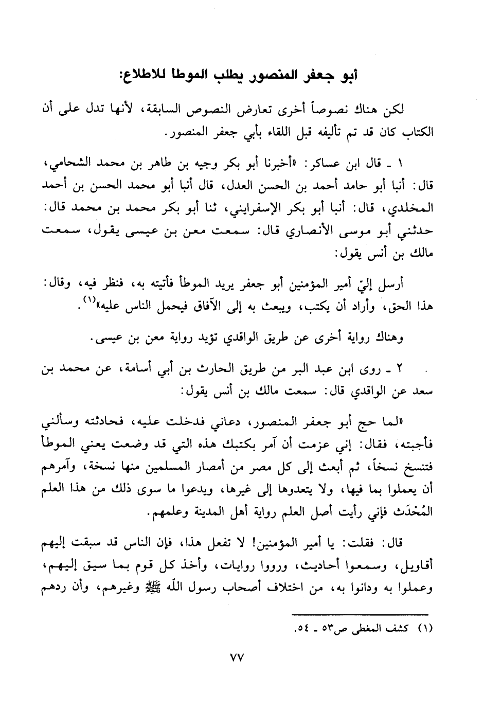 أبو جعفر المنصور يطلب الموطأ للاطلاع