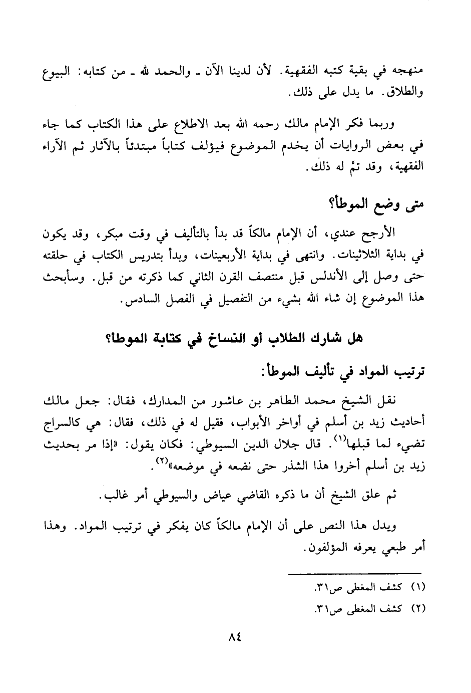 ويدل هذا النص على أن الإمام مالكاً كان يفكر في ترتيب المواد. وهذا أمر طبعي يعرفه المؤلفون.
