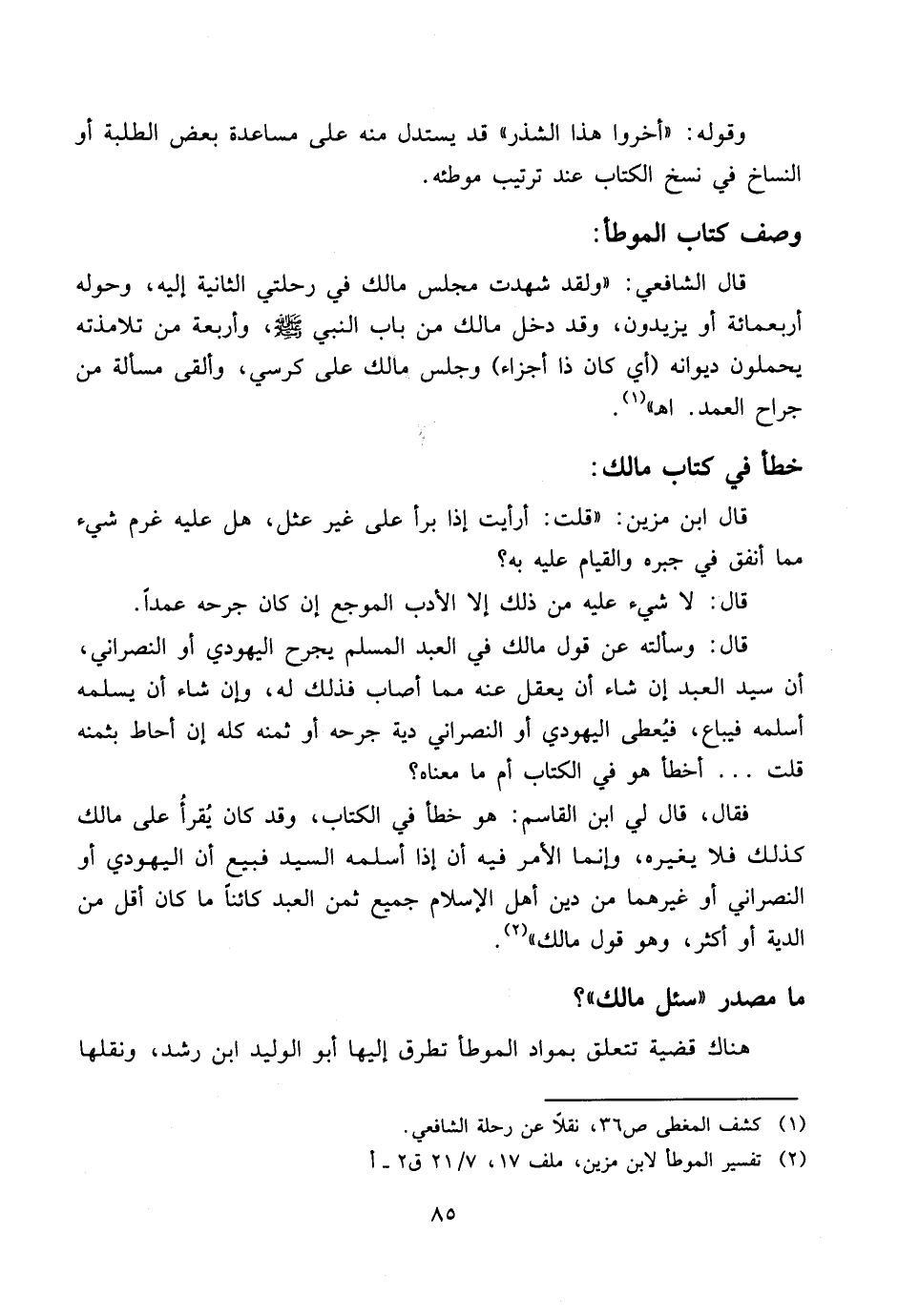 ما مصدر «سئل مالك»؟