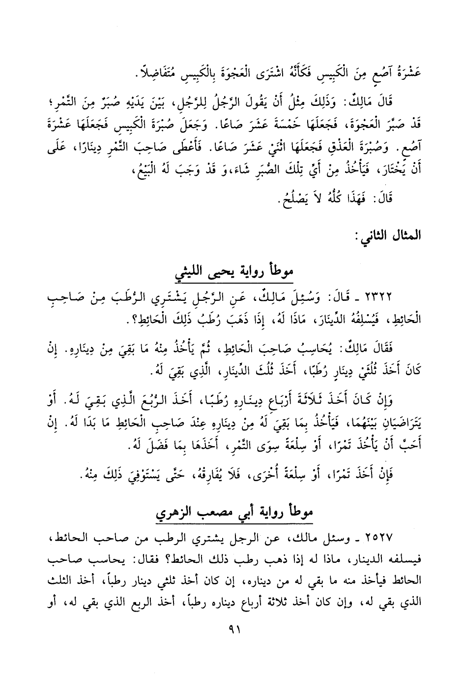 ٢٥٢٧ - وسئل مالك، عن الرجل يشتري الرطب من صاحب الحائط، فيسلفه الدينار، ماذا له إذا ذهب رطب ذلك الحائط؟ فقال: يحاسب صاحب الحائط فيأخذ منه ما بقي له من ديناره، إن كان أخذ ثلثي دينار رطباً، أخذ الثلث الذي بقي له، وإن كان أخذ ثلاثة أرباع ديناره رطباً، أخذ الربع الذي بقي له، أو