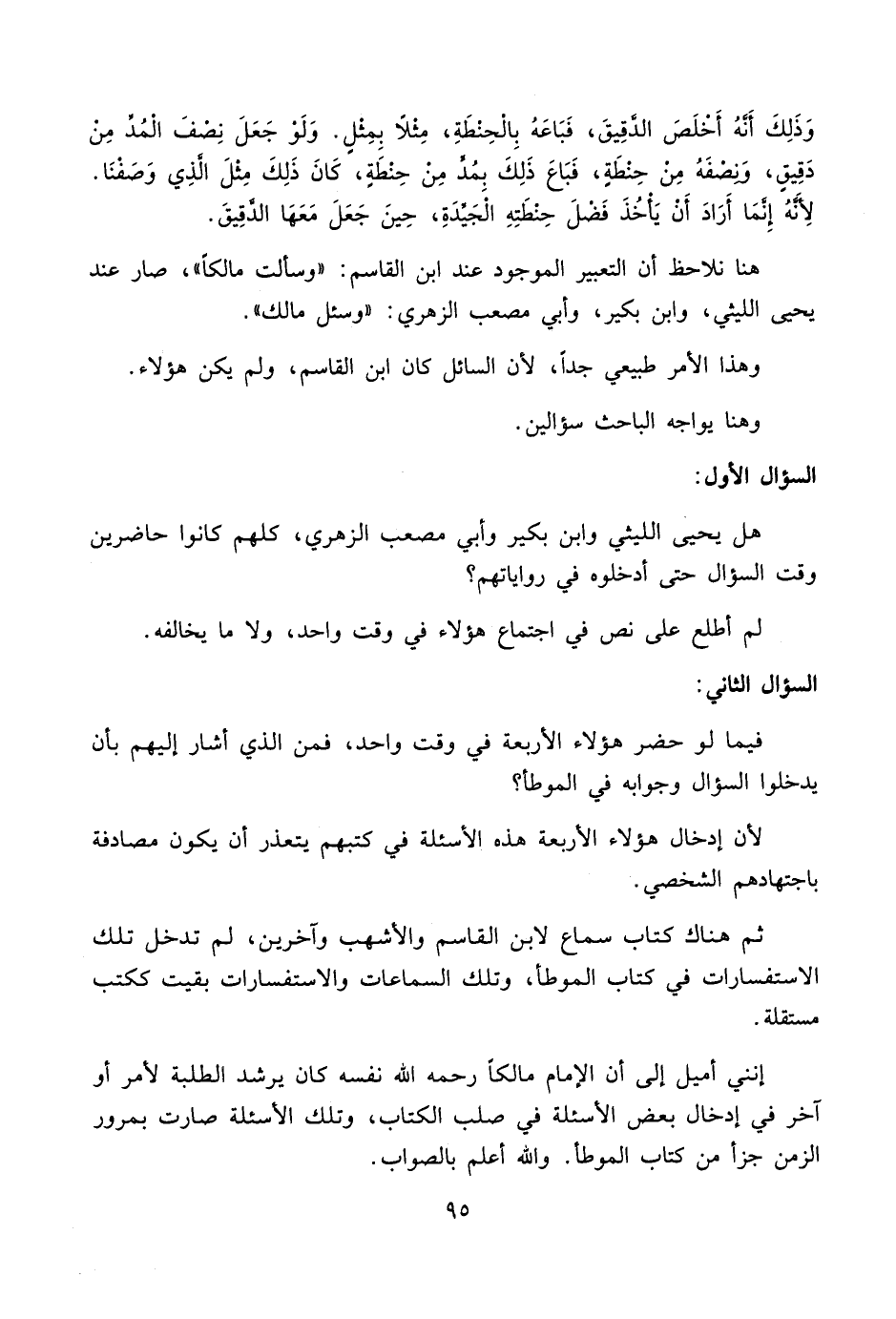 إنني أميل إلى أن الإمام مالكاً رحمه الله نفسه كان يرشد الطلبة لأمر أو آخر في إدخال بعض الأسئلة في صلب الكتاب، وتلك الأسئلة صارت بمرور الزمن جزأ من كتاب الموطأ. والله أعلم بالصواب.