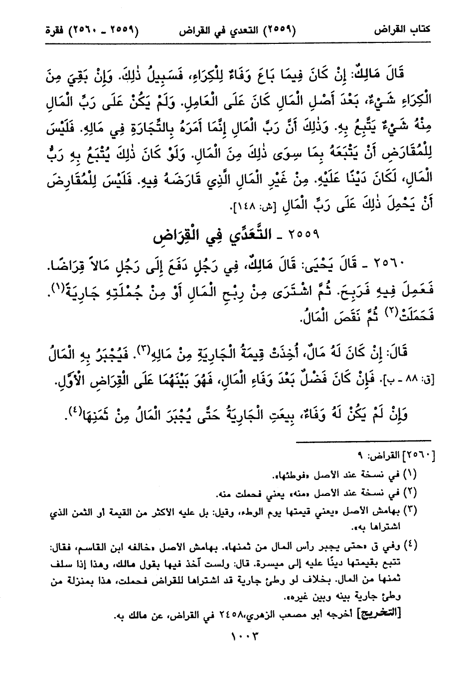 ٢٥٥٩ - التَّعَدِّي فِي الْقِرَاضِ