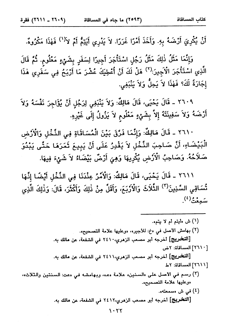 ٢٦١١ - قَالَ يَحْيَى، قَالَ مَالِكٌ: وَالْأَمْرُ عِنْدَنَا فِي النَّخْلِ أَيْضاً إِنَّهَا تُسَاقِي السِّنِينَ (١) الثَّلَاثَ وَالْأَرْبَعَ، وَأَقَلَّ مِنْ ذلِكَ وَأَكْثَرَ، قَالَ: وَذلِكَ الَّذِي سَمِعْتُ (٢).