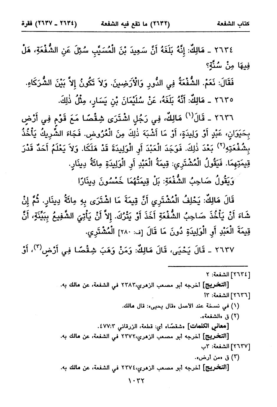 ٢٦٣٤ - مَالِكٌ: إِنَّهُ بَلَغَهُ أَنَّ سَعِيدَ بْنَ الْمُسَيَّبِ سُئِلَ عَنِ الشُّفْعَةِ، هَلْ فِيهَا مِنْ سُنَّةٍ؟