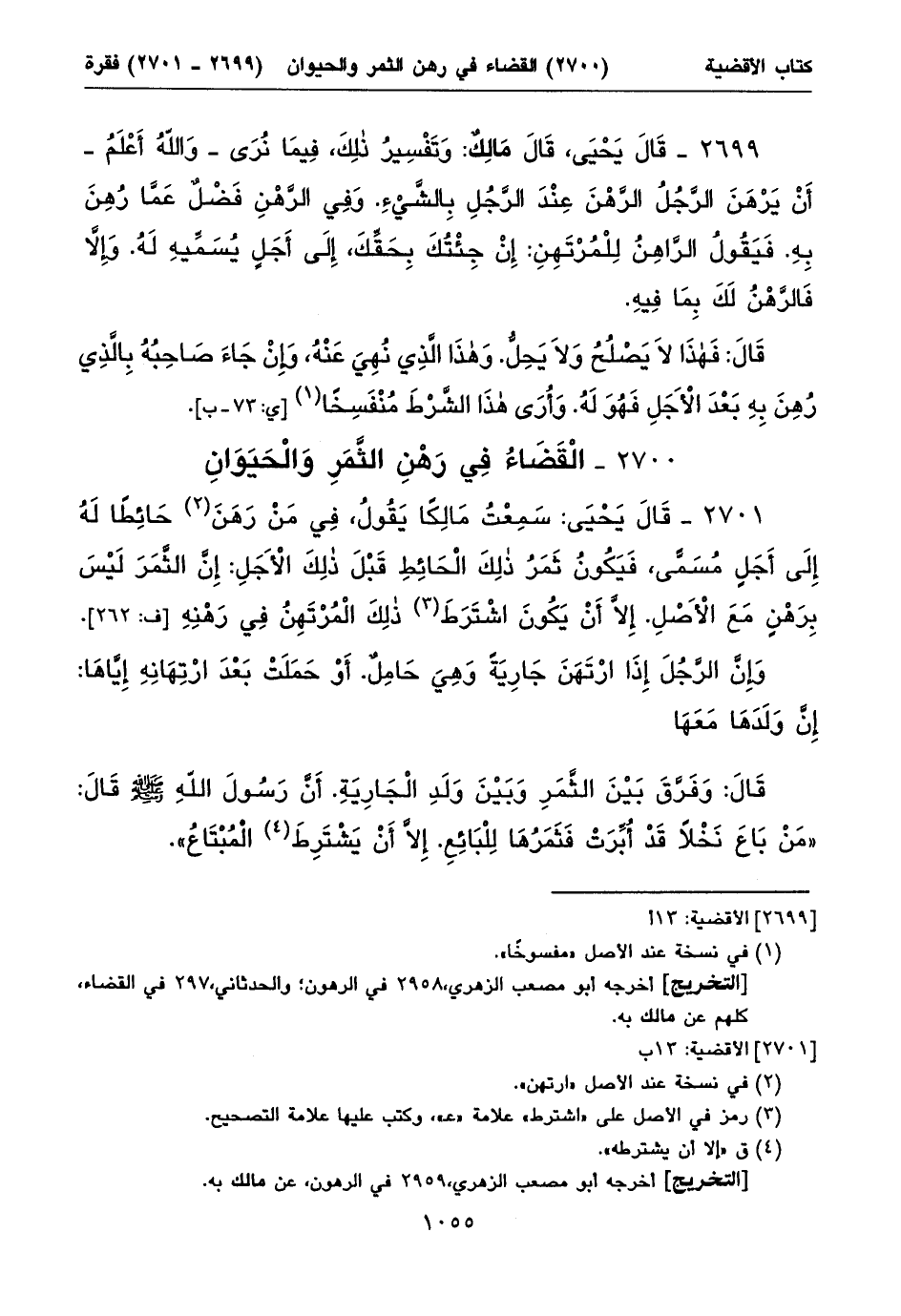 ٢٧٠٠ - الْقَضَاءُ فِي رَهْنِ الثَّمَرِ وَالْحَيَوَانِ