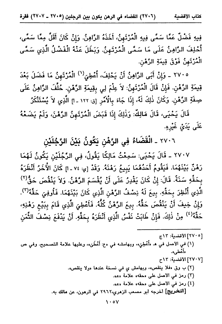 ٢٧٠٦ - الْقَضَاءُ فِي الرَّهْنِ يَكُونُ بَيْنَ الرَّجُلَيْنِ